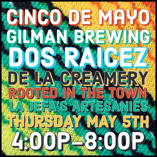 Pop-up party featuring Dos Raicez, De La Creamery, Rooted in the Town, La Jefa’s Artesanies, and Miche el Kora Micheladas! All ages.
