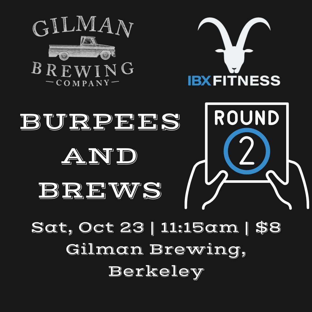Welcome to the second Burpees & Brews from @gilmanbrewing and @ibx.fitness! We’ll meet at Gilman Brewing in Berkeley on Saturday, 10/23, event starts at 11:15 am. $8 gets you a 30-minute workout followed by a beer of your choice. Don’t worry, we won’t just do burpees, we’ll make sure you get a well-rounded workout!